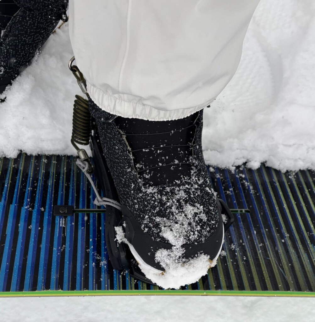 リフト降りて、立ったまま装着して、すぐ滑り始めることができて、履き心地、滑り心地も悪くない。