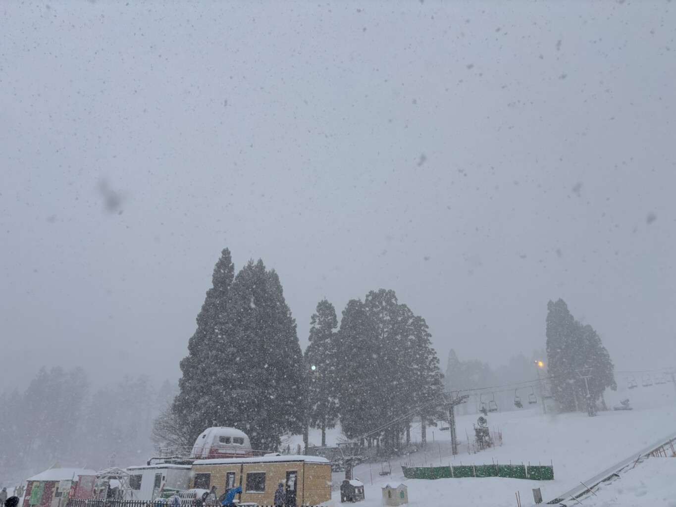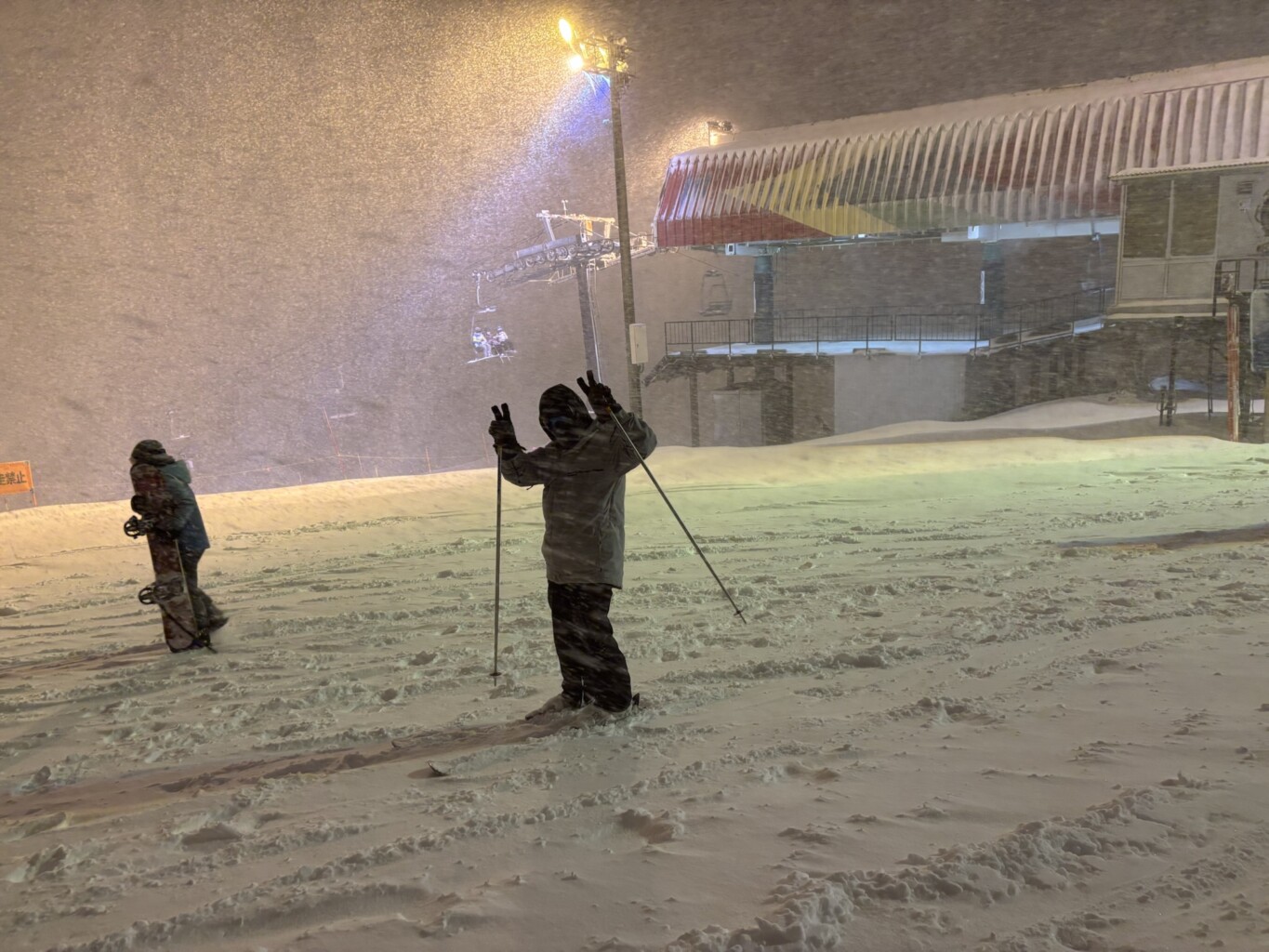 シンシンと降る大雪のせいで昼間はほぼ滑れず。